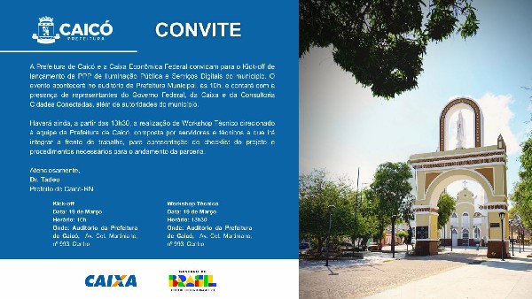 A Prefeitura de Caicó (RN) realiza, nesta quinta-feira, 19 de março, o lançamento do projeto de Parceria Público-Privada (PPP) que irá promover a modernização da iluminação pública do município e estruturar uma nova base tecnológica voltada à